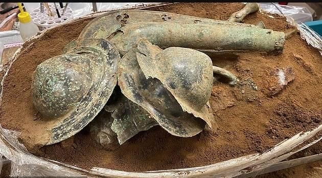 وتضم المكتشفات 5 رؤوس دروع معدنية نادرة ليس في بريطانيا فحسب، بل على مستوى أوروبا.