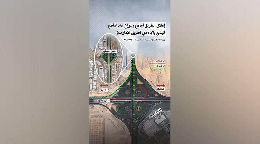 إغلاق الطريق الجامع والموزّع عند تقاطع البديع باتجاه دبي