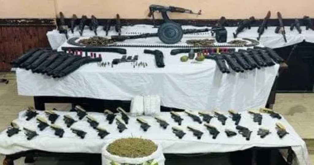 وبتفيشه عثر بحوزته على بندقية آلية عيار 7.62 في 39 مم، مطموسة الأرقام و20 طلقة من ذات العيار، إضافة إلى كميات متنوعة من المواد المخدرة شملت والهيروين والآيس والاستروكس، تزن عدة كيلوجرامات، فضلًا عن مبلغ وهواتف محمولة يُشتبه في كونها من متحصلات نشاطه الإجرامي.