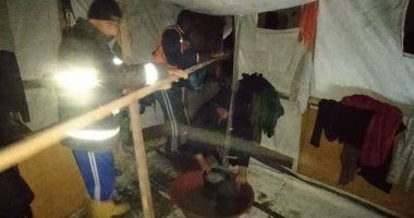 ووفق الدفاع المدني بغزة، فإن طواقمه أنقذت عائلات فلسطينية نازحة بعد غرق خيامها نتيجة شدة الأمطار بمواصي خان يونس.