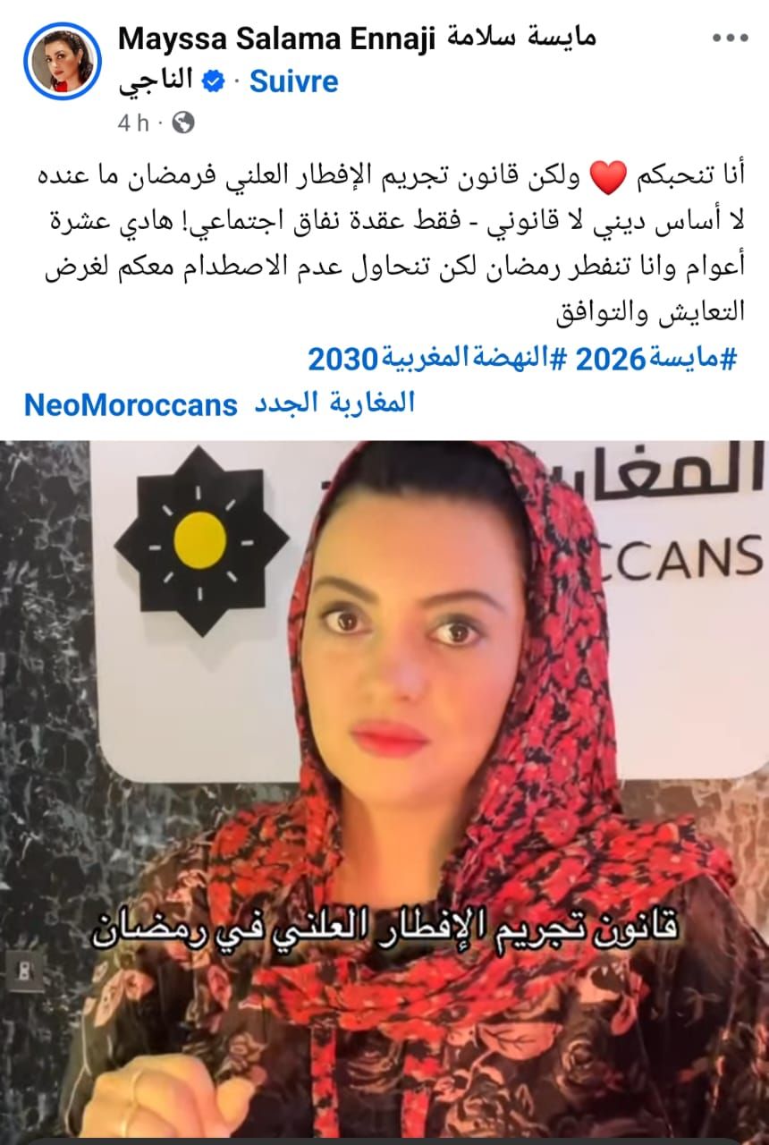 تأتي هذه "الخرجة" في سياق الأصوات الحقوقية المطالبة بإلغاء الفصل 222 من القانون الجنائي المغربي، الذي يعاقب المجاهرين بالإفطار. ويبدو أن الناجي تسعى من خلال وسوم مثل #النهضة_المغربية_2030 إلى قيادة تيار فكري يربط بين الحريات الفردية وبين مشروع تحديثي للمجتمع، مما يفتح الباب واسعاً أمام نقاش حاد بين التيار المحافظ المتمسك بـ"حرمة الشهر" والتيار الليبرالي المنادي بـ"حرية المعتقد".