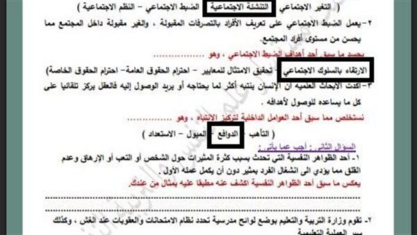 لطلاب الصف الثاني الثانوي.. أسئلة تقييمات الأسبوع الثالث علم النفس والاجتماع