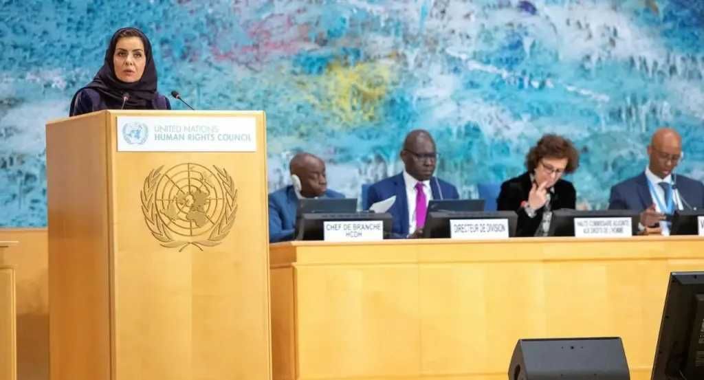 وقالت في كلمة المملكة أمام المجلس: "إن المملكة تثمن نبل أهداف مجلس حقوق الإنسان، وتؤكد أهمية تحقيقها على أرض الواقع من خلال التعاون المشترك".