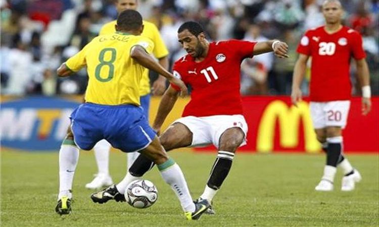 هدف محمد شوقي في شباك البرازيل أحد مدافع الكرة المصرية